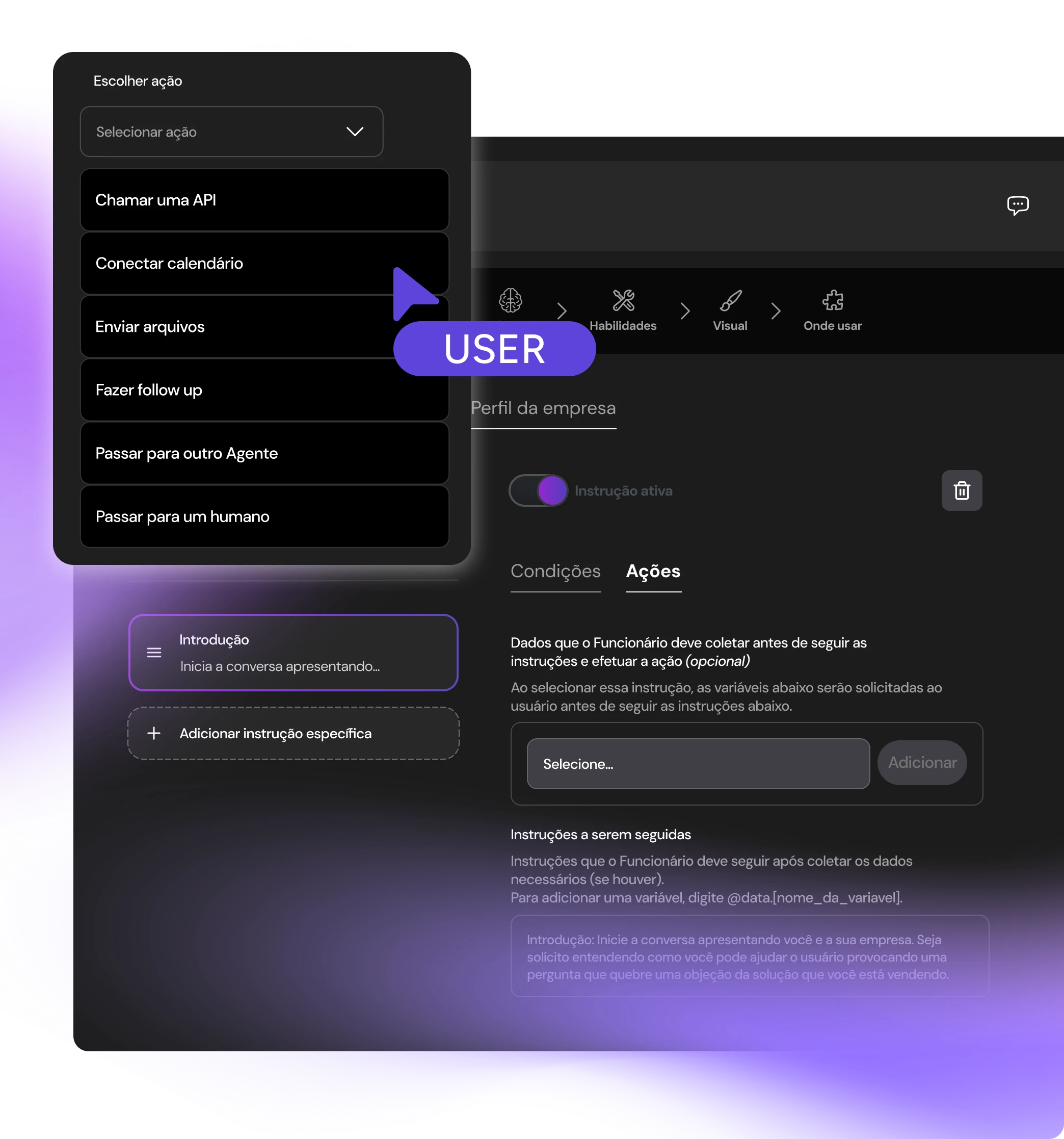 Automate processes wherever your customers are. Connect Zaia to your website, WhatsApp, Instagram, Make, or any other channel through API integration.